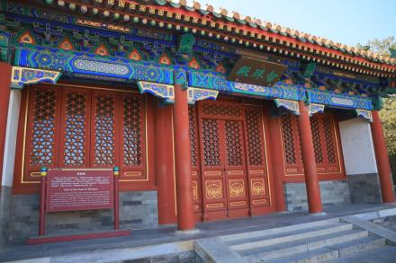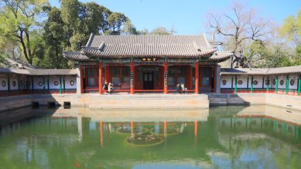 畫舫齋位于北海東岸,建于清乾隆二十二年(1757年),是掩映在山林中的一處獨立院落。前殿為“春雨淋塘”,中有水池,北為正殿“畫舫齋”。東西各有一處院落,東為“古柯庭”,西為“小玲瓏”。整個畫舫齋朱廊環(huán)繞,結(jié)構(gòu)精巧,環(huán)境別致,形似停泊在北海湖邊的一條大船,原引用歐陽修的《畫舫齋記》而造其形,得其名。乾隆皇帝經(jīng)常到此游玩,光緒皇帝曾在此居住,慈禧太后也常來這里游宴、聽評書。