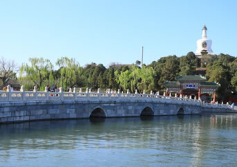 北海公園全園以北海為中心,遼、金、元在此建離宮,明、清辟為帝王御苑,屬于中國古代皇家園林。