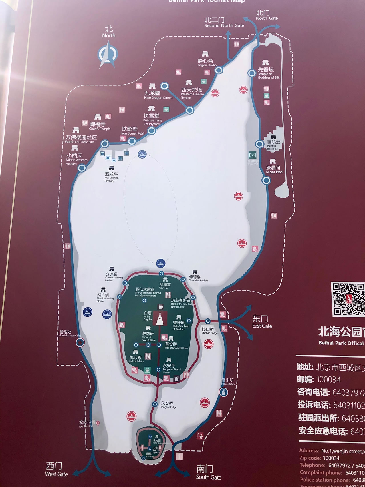 北海公園,位于北京市西城區(qū)文津街1號,東鄰景山,南瀕中南海,北連什剎海,屬于中國古代皇家園林。全園占地69公頃(其中水面39公頃),主要由瓊?cè)A島、東岸和北岸景區(qū)組成。瓊?cè)A島上樹木蒼郁,亭臺樓閣幽靜,白塔聳立山巔,成為公園的標(biāo)志,1925年開放為公園。
