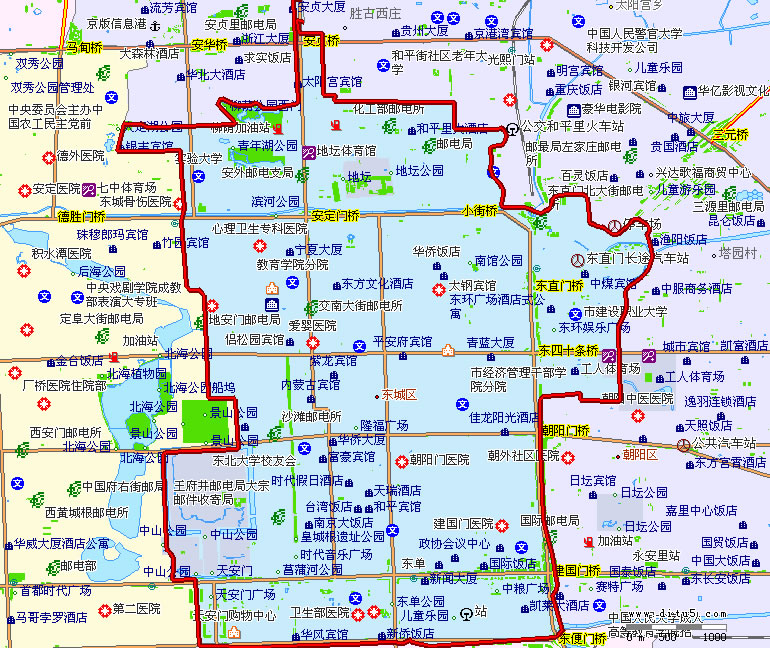 東直門街道 面積2.2平方千米,人口46017,政府駐工人體育館社區(qū)新中街66號,下轄10個(gè)社區(qū)