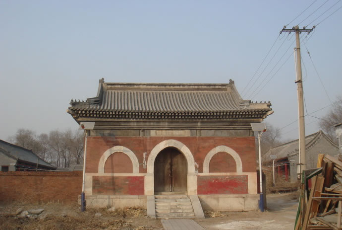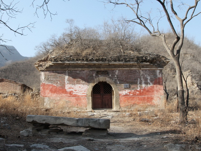 廣智禪寺 廣智禪寺坐西朝東,占地5畝左右,始建于明建文時期,清代曾修繕。原有兩進院落,前低后高,梯狀布局。山門早已無存,門后為紅墻觀音寶殿,為全部磚石結(jié)構(gòu)的穹窿頂無梁殿,面闊9.50米,進深8.40米(面闊與進深相差不大,幾近正方形),據(jù)說是北京地區(qū)跨度最大穹窿頂古建筑。四面無窗,只有正面一個青石拱券門,廡殿頂灰筒瓦屋面,門上原有石額:“觀音寶殿”,2013年秋被盜走。殿內(nèi)原有漢白玉雕須彌座,現(xiàn)也已無存。