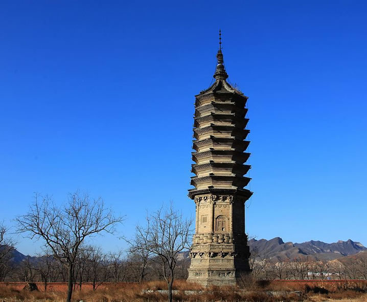 豆各莊塔 豆各莊塔位于青龍湖鎮(zhèn)豆各莊村,為房山區(qū)文物保護單位。始建于唐代。坐西朝東,是一座八角密檐式磚塔,通高約15米。塔身上有磚雕。八面磚雕輪、螺、傘、蓋、花、罐、魚、長的佛八寶圖像。塔基上端為三層磚雕仰蓮。東面辟券門,其它各面分別開設(shè)磚雕的假門、假窗。塔身之上是八層仿樓閣密檐。第一層檐下裝飾斗拱。其它每兩層榴之間做成仰、覆蓮瓣。檐子為疊澀式。塔剎由下大上小的兩層磚雕蓮花組成。這座塔的特點是采用蓮花裝飾的成分多:整個塔由基座上的三層仰蓮?fù)衅穑T窗層以上每兩層檐中央又裝飾上下對稱的仰覆蓮瓣,共有八層;再用蓮花封頂。 風(fēng)景名勝