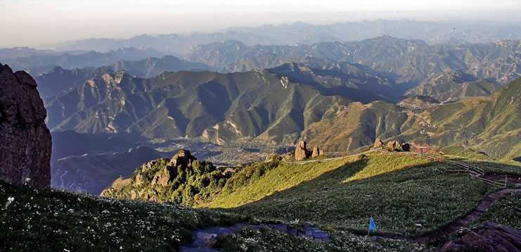 中國房山世界地質(zhì)公園-圣蓮山風(fēng)景區(qū) 圣蓮山風(fēng)景區(qū)為國家AAAA級旅游景區(qū)、愛國主義教育基地,位于北京市房山區(qū)史家營鄉(xiāng),原名“圣米石塘”,是早時“京畿八景”之一。圣蓮山海拔930米,山上有民國時期曹錕、吳佩孚、楊小樓等在此修建的別墅群。山上天然溶洞圣水洞中的泉水,傳說大清皇帝乾隆曾派人取水養(yǎng)生。是一處集人文景觀與自然景觀于一體的旅游、觀光勝地。景區(qū)有獨特的第四紀(距今260萬年)洞穴沉積遺跡——“圣米”,有賦存于寒武——奧陶紀(距今5.4-4.5億年)地層中的海相沉積構(gòu)造。 園區(qū)植被為地帶性落葉闊葉林,林木覆蓋率高,達70-90%。野生植物有700多種,主要樹種有漆、榆、山楊、白樺、遼東櫟、胡桃楸等。野生動物有130多種,以華北地區(qū)常見動物為主。