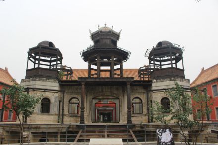 延禧宮為內(nèi)廷東六宮之一,建于明永樂十八年(1420年),初名長壽宮。殿前有東西配殿各3間。后院正殿5間,亦有東西配殿各3間,均為黃琉璃瓦硬山頂。宣統(tǒng)元年(1909年)在延禧宮原址興工修建一座3層西洋式建筑——水殿。水殿四周浚池,引玉泉山水環(huán)繞。主樓每層9間,底層四面當(dāng)中各開一門,四周環(huán)以圍廊。隆裕太后題匾額曰“靈沼軒”,俗稱“水晶宮”。1917年張勛復(fù)辟時,延禧宮北部被直系部隊飛機投彈炸毀。