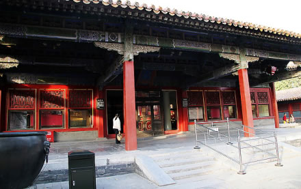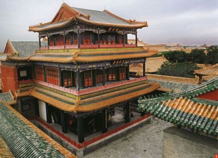 永和宮,內(nèi)廷東六宮之一,位于承乾宮之東、景陽宮之南。明代為妃嬪所居,清代為后妃所居。清康熙帝孝恭仁皇后久居此宮。其后,道光帝靜貴妃,咸豐帝麗貴人等先后在此居住。宮為二進院,正門南向,名永和門,前院正殿即永和宮,面闊5間。明間開門,次、梢間皆為檻墻,上安支窗。正間室內(nèi)懸乾隆御題“儀昭淑慎”匾,吊白樘箅子頂棚,方磚墁地。東西有配殿各3間,明間開門,黃琉璃瓦硬山式頂,檐下飾旋子彩畫。東西配殿的北側(cè)皆為耳房,各3間。