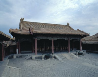 太極殿,內(nèi)廷西六宮之一,建于明永樂十八年(1420年)。原名未央宮,因嘉靖皇帝的生父興獻王朱祐杬生于此,故于嘉靖十四年(1535年)更名啟祥宮,清代晚期改稱太極殿。清代曾多次修葺。太極殿原為二進院,清后期改修長春宮時,將太極殿后殿辟為穿堂殿,后檐接出抱廈,并與長春宮及其東西配殿以轉(zhuǎn)角游廊相連,形成回廊,東西耳房各開一間為通道,使太極殿與長春宮連接成相互貫通的四進院。