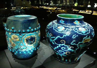 瓷器:北京故宮擁有35萬件陶瓷器,包括一級品1100多件,二級品約5.6萬件,另有從全國200多個窯口所采集的3.6萬余片陶瓷標本。收藏特色尤其體現(xiàn)在三國至唐五代陶瓷器、元瓷、清中晚期御窯、宮廷陳設(shè)用瓷、紫砂器、多釉彩大型瓷器、清御窯生產(chǎn)資料、歷代民窯瓷器和考古發(fā)掘資料。