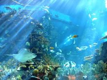主要展品:鞭蝴蝶、長吻鼻魚、多帶蝴蝶、副刺尾魚、?、海馬、黃高鰭刺尾魚、藍綠光鰓、藍紋蝴蝶、鐮蝴蝶、牛角、六斑刺鲀、珊瑚、石斑魚、石頭魚、鲀科魚、心斑刺尾魚、小丑魚、熊貓龍、醫(yī)生魚。