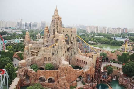 水晶圣城:60余米高聳的亞特蘭蒂斯水晶圣城被賦予開門見山、主導(dǎo)全局的功能,是北京歡樂谷的標志性景觀,也是公園的制高點。 亞特蘭蒂斯人的水晶圣城不但是水晶的開采加工中心,同時也是將智慧與能量輸入水晶并不斷積累的寶庫。