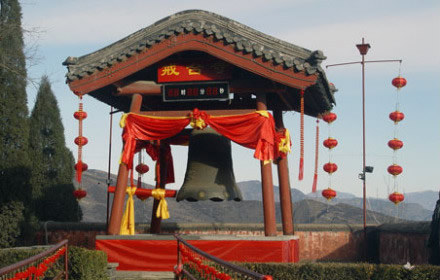 大鐘亭:戒臺寺內(nèi)有一座大鐘亭,原是地藏院的附屬建筑。鐘亭為卷棚頂,四根支柱呈八字形叉開斜立,式樣別致。在亭內(nèi)原掛有一口高3.2米,下口直徑2.2米的大鐵鐘,名叫幽瞑鐘,主要供每年的7月30日戒臺寺做地藏法會之用。大鐘亭位于寺院東北角6米多高的臺基之上,背后三面環(huán)山,前方東望平原,居高臨下,毫無遮攔。由于三面環(huán)山形成了一個天然巨大的共鳴箱,鐘聲經(jīng)過震蕩共鳴,被環(huán)山反射而回,從東北側(cè)開口處沖出,因而可以傳得很遠,據(jù)說在四十里之遙的阜成門外八里莊都能聽得見,F(xiàn)今幽瞑鐘已不存在,大鐘亭內(nèi)掛有一口明景泰銅鐘,鐘高1.6米,下口直徑0.9米,壁厚8厘米,鐘紐高0.3米。此鐘為八峰波形口,鐘紐為虹形雙龍頭蒲牢,鐘體上鑄有云紋,銘為“大明景泰年月日制”。此鐘原掛在戒壇大殿內(nèi),供舉行受戒儀式之用。公園管理處為了增添游藝項目,而將此鐘移到了大鐘亭,供游客撞擊娛樂。這口銅鐘雖然比原來的大鐵鐘要小得多,但鑄造精美,工藝考究,線條流暢。戒臺寺的鐘聲在歷史上是非常有名的,清代的江寧織造曹寅,即《紅樓夢》作者曹雪芹的祖父,曾寫下了一首很有名的詩,名曰《馬上望戒壇》:“白云滿山誰打鐘?馬首西來路不逢。據(jù)此相看如一夢,因緣還欠戒臺松”。