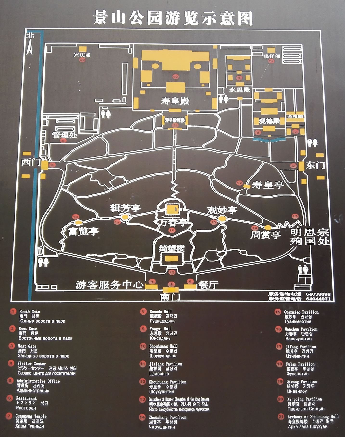 景山公園位于北京市西城區(qū)景山前街,坐落在明清北京城的中軸線上,西臨北海,南與故宮神武門隔街相望,是明、清兩代的御苑。公園中心的景山為堆土而成,曾是全城的制高點。占地23萬平方米。山高43米,周長1015米。園內(nèi)花卉草坪占地1100 平方米。
