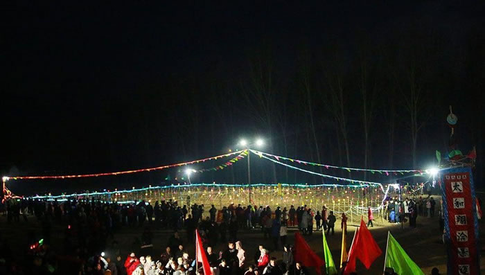 九曲黃河陣燈俗 九曲黃河陣燈俗俗稱“燈場子”,流傳于太師屯鎮(zhèn)東田各莊村。 明代洪武四年(1371),山西移民將“燈場子”傳入東田各莊,傳承至今,已有六百多年的歷史。 村中劉繼華老人保存的九曲黃河陣燈會圖譜已有百年歷史,圖中陣式按周易九宮八卦方位,以富貴不斷頭的傳統(tǒng)圖案九曲而成。陣內(nèi)乾、坎、艮、震、巽、離、坤、兌八宮加上中宮共有九宮,系模擬古代戰(zhàn)陣而成。 每年春節(jié)期間,東田各莊農(nóng)歷正月初十開始扎燈,正月十四、十五、十六三天正式舉行燈會,正月十七后撤燈。燈會期間,人們從四面八方趕來觀燈賞會,走燈陣,看大戲。走進燈陣入口以后,如能順利地通過連環(huán)陣,再從出口返回,就意味著一年順順當(dāng)當(dāng)、平平安安,故當(dāng)?shù)赜?ldquo;順著燈陣走,能活九十九”的說法。 東田各莊九曲黃河陣燈俗有兩個主要特點,一是燈場與花會相結(jié)合,二是燈會與戲曲表演相結(jié)合。九曲黃河陣燈會帶有某種智能游戲的性質(zhì),燈陣及其外延的燈會包含著豐富的文化內(nèi)涵,具有較高的歷史文化研究價值。 2008年6月7日,九曲黃河陣燈俗被國務(wù)院公布為第二批國家級非物質(zhì)文化遺產(chǎn)名錄。 風(fēng)景名勝