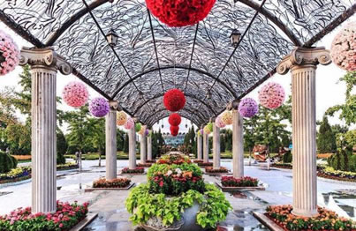 中國園林占地450平方米,采用我國南方傳統(tǒng)建筑風格的白墻、灰瓦和花窗,極富江南韻味,古老的月亮門勾起您的懷舊情思。進入花園,曲徑通幽的小道蜿蜒伸向遠方,滿園的月季花鮮艷奪目。