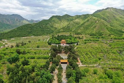 昭陵陵園建筑面積為35000平方米,現(xiàn)存有完整的祾恩門、祾恩殿及其東西配殿,和方城、明樓、寶頂?shù)取_@里埋葬有明朝第十二帝穆宗朱載垕和他的三位皇后。