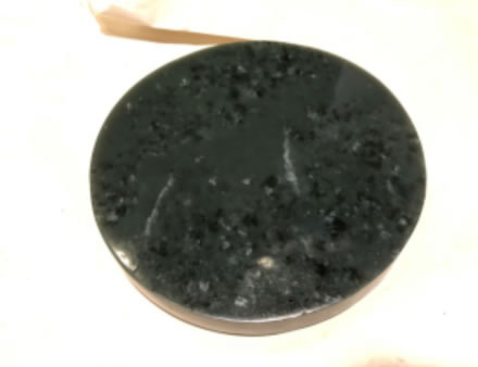 和田玉,圓形,墨綠色,間深色斑紋。