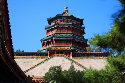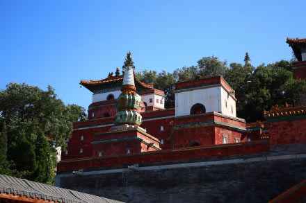 萬(wàn)壽山后山、后湖古木成林,有藏式寺廟,蘇州河古買(mǎi)賣(mài)街。后湖東端有仿無(wú)錫寄暢園而建的諧趣園,小巧玲瓏,被稱(chēng)為“園中之園”。
