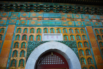 智慧海是萬(wàn)壽山頂最高處一座宗教建筑,是一座完全由磚石砌成的無(wú)梁佛殿,由拱券結(jié)構(gòu)組成。建筑外層全部精美的黃、綠兩色琉璃瓦裝飾,上部用少量紫色、藍(lán)色的琉璃瓦蓋頂,尤以嵌于殿外壁面的千余尊琉璃佛更富特色!爸腔酆!币辉~為佛教用語(yǔ),本意是贊揚(yáng)佛的智慧如海,佛法無(wú)邊。該建筑雖極像木結(jié)構(gòu),但實(shí)際上沒(méi)有一根木料,全部用石磚發(fā)券砌成的,沒(méi)有枋檁承重,所以稱(chēng)為“無(wú)梁殿”。又因殿內(nèi)供奉了無(wú)量壽佛,所以也稱(chēng)它為“無(wú)量殿”。
