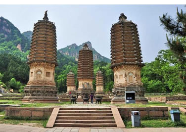 圓通塔全稱圓通大禪師舍利塔, 法華禪寺院內(nèi)五塔之一。密檐式磚塔,總高14.4米。塔形制基本同虛靜塔,但細(xì)部裝飾稍有不同。塔基束腰部位均用素磚壘砌,塔身假券門券面磚則南雕飛天、北雕花卉。南面的假券洞內(nèi)嵌白石銘,篆刻“圓通大禪師善公靈塔”等字。第二層以上各層塔檐斗柱也未采取鴛鴦交首形制,F(xiàn)存塔剎寶珠以下部分。