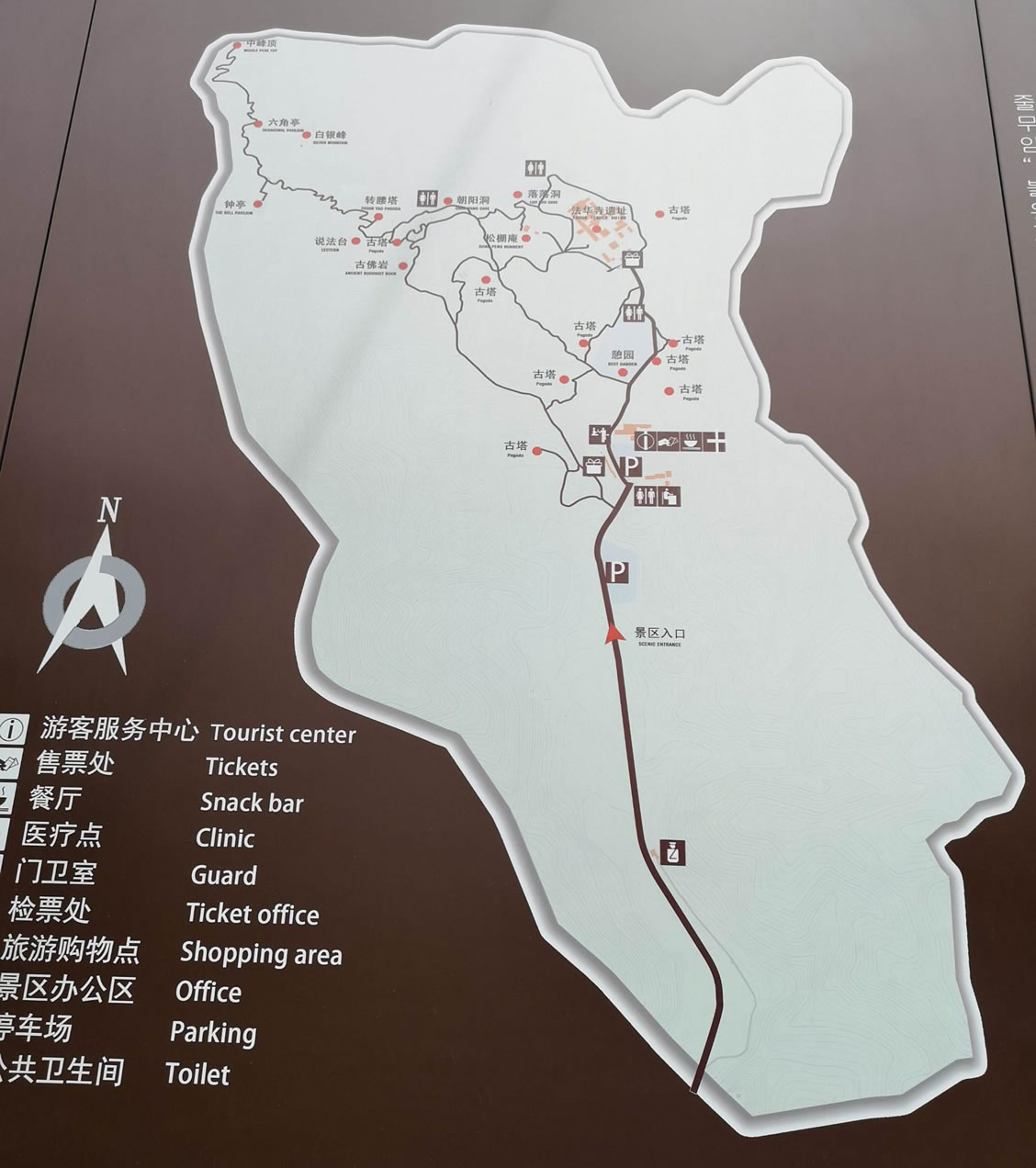 無(wú)銘密檐式塔位于法華禪寺址東側(cè)。塔身已不完整,殘高6.8米。塔的平面呈六邊形。塔基,塔身雕飾略似前述各塔,但自第一層塔身而上,每面塔身、塔檐均呈向內(nèi)彎曲的弧線,樣式特殊。各層檐面之下也均以素磚疊澀挑出,頂部不覆瓦。