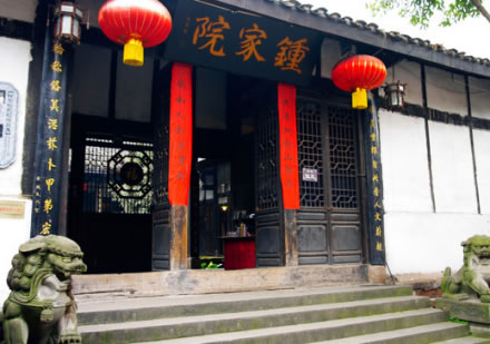鐘家院位于磁器口黃桷坪一巷17號附1號,占地面積738.4平方米(含院壩),建筑面積537.6平方米,是歷史建筑和不可移動(dòng)文物。鐘家院建成于清光緒十六年(1890年),主人是在磁器口長大的鐘云亭先生。整個(gè)院子有北方四合院韻味,又有南方民居精致典雅的特色。院內(nèi)展示有明清古床、花好月圓桌等古代文物,是清代民居的重要展示場所。