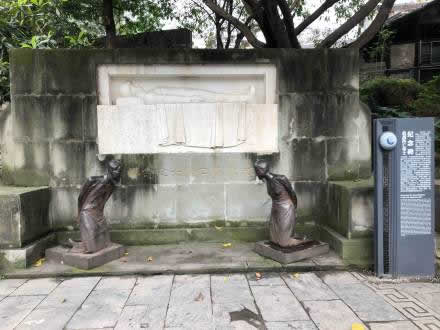 為紀(jì)念抗戰(zhàn)陣亡的將士而塑的大賣國賊汪精衛(wèi)、陳璧君夫婦的跪像。民國二十九年(1940年),跪像由馮玉祥主持、王臨乙設(shè)計(jì)創(chuàng)作,因經(jīng)費(fèi)原因,原跪像為青石雕刻,20世紀(jì)50年代修公路被深埋地下,F(xiàn)跪像為生鐵鑄造,系2002年重新制作。