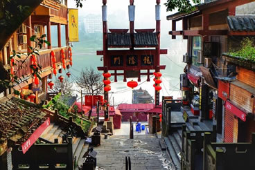 磁器口古鎮(zhèn),原名龍隱鎮(zhèn),位于重慶市沙坪壩區(qū)磁南街1號,沙坪壩區(qū)東北部嘉陵江畔。北距沙坪壩中心5千米,重慶市中心14千米,南距石井坡3千米。磁器口古鎮(zhèn)總面積32.5萬平方米,其中保存完好的古鎮(zhèn)核心區(qū)14.3萬平方米,分布于馬鞍山東側(cè)和東南側(cè)。古鎮(zhèn)依山而建,由山起城。以磁器口正街和橫街為骨架,42條巷道垂直于正街和橫街向馬鞍山脊和溪溝邊緣呈枝狀發(fā)展,形成特征明顯的樹枝狀平面格局。正街和橫街寬3—6.5米,將嘉陵江水運(yùn)碼頭、寶輪寺及外圍交通干道聯(lián)為一體。巷道寬1.5—4.5米,順應(yīng)地形靈活布局,不拘一格,街道—巷道—宅院構(gòu)成公共空間、半公共空間、私有空間的3級空間結(jié)構(gòu),形成清晰的街區(qū)社會(huì)組織的基本模式。