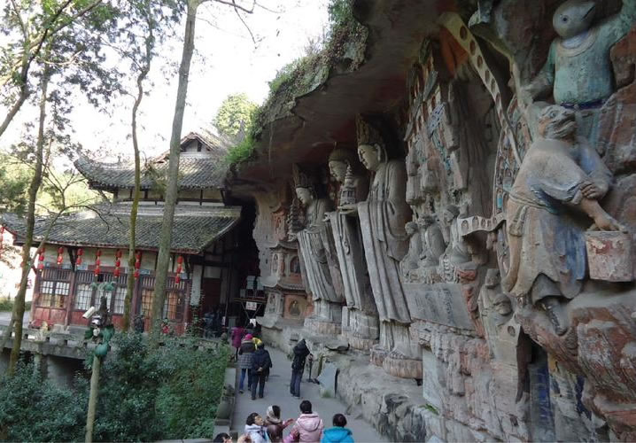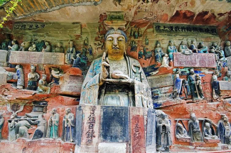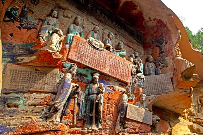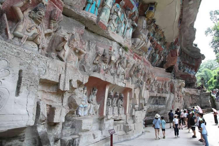 重慶市的大足石刻以其規(guī)模宏大、雕刻精美、題材多樣、內(nèi)涵豐富和保存完整而著稱于世。它集中國(guó)佛教、道教、儒家“三教”造像藝術(shù)的精華,以鮮明的民族化和生活化特色,成為中國(guó)石窟藝術(shù)中一顆璀璨的明珠。它以大量的實(shí)物形象和文字史料,從不同側(cè)面展示了九世紀(jì)末至十三世紀(jì)中葉中國(guó)石刻藝術(shù)的風(fēng)格和民間宗教信仰的發(fā)展變化,對(duì)中國(guó)石刻藝術(shù)的創(chuàng)新與發(fā)展做出了重要貢獻(xiàn),具有前代石窟不可替代的歷史、藝術(shù)和科學(xué)價(jià)值。許多歐洲人、尤其是法國(guó)人,對(duì)大足石刻寵愛(ài)倍加。