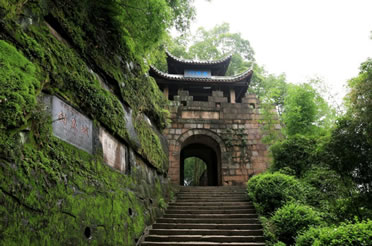 護(hù)國門重慶十大標(biāo)志性旅游景觀之一。護(hù)國門為釣魚城的標(biāo)志性建筑,位于城南第二道防線上,在釣魚城題刻的右側(cè)上部。在釣魚城8座城門中,護(hù)國門是規(guī)模最大的一道雄關(guān),城門洞高3.24米,寬2.45米,進(jìn)深6.42米。城臺(tái)上為重檐歇山頂式城樓,高7米。其樓北倚峭壁,南臨懸崖,旁有古榕交柯,蔚為壯觀。當(dāng)年,釣魚城軍民曾在護(hù)國門前面的峭壁上開鑿石穴,架梁鋪木,施以棧道出入。情況緊急之時(shí),可迅速地將橫梁上的木板抽掉,使其通道斷絕,猶如我國北方古城的城門吊橋。如今,棧道石穴猶存。在護(hù)國門平頂門道南壁和后門洞東側(cè),還保留有宋代的城門構(gòu)件和登城的石級(jí)。