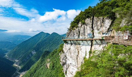 九重天景區(qū)位于豐都縣雙路鎮(zhèn)蓮花山,國家AAAA級景區(qū),距縣城15公里,景區(qū)核心景點玻璃棧道全長3.5公里,距離龍河谷底900余米,一座長達200余米、懸空高度達900余米的5D玻璃吊橋聳立于棧道之上,景區(qū)還有懸崖秋千、飛拉達攀巖、網(wǎng)紅大秋千等體驗項目,大人小孩皆可體驗。另外景區(qū)配備了天空之境、玫瑰長廊、風車長廊等網(wǎng)紅打卡點,讓網(wǎng)紅打卡者流連忘返。觀龍河峽谷絕美風光,體驗高空項目的驚險刺激。