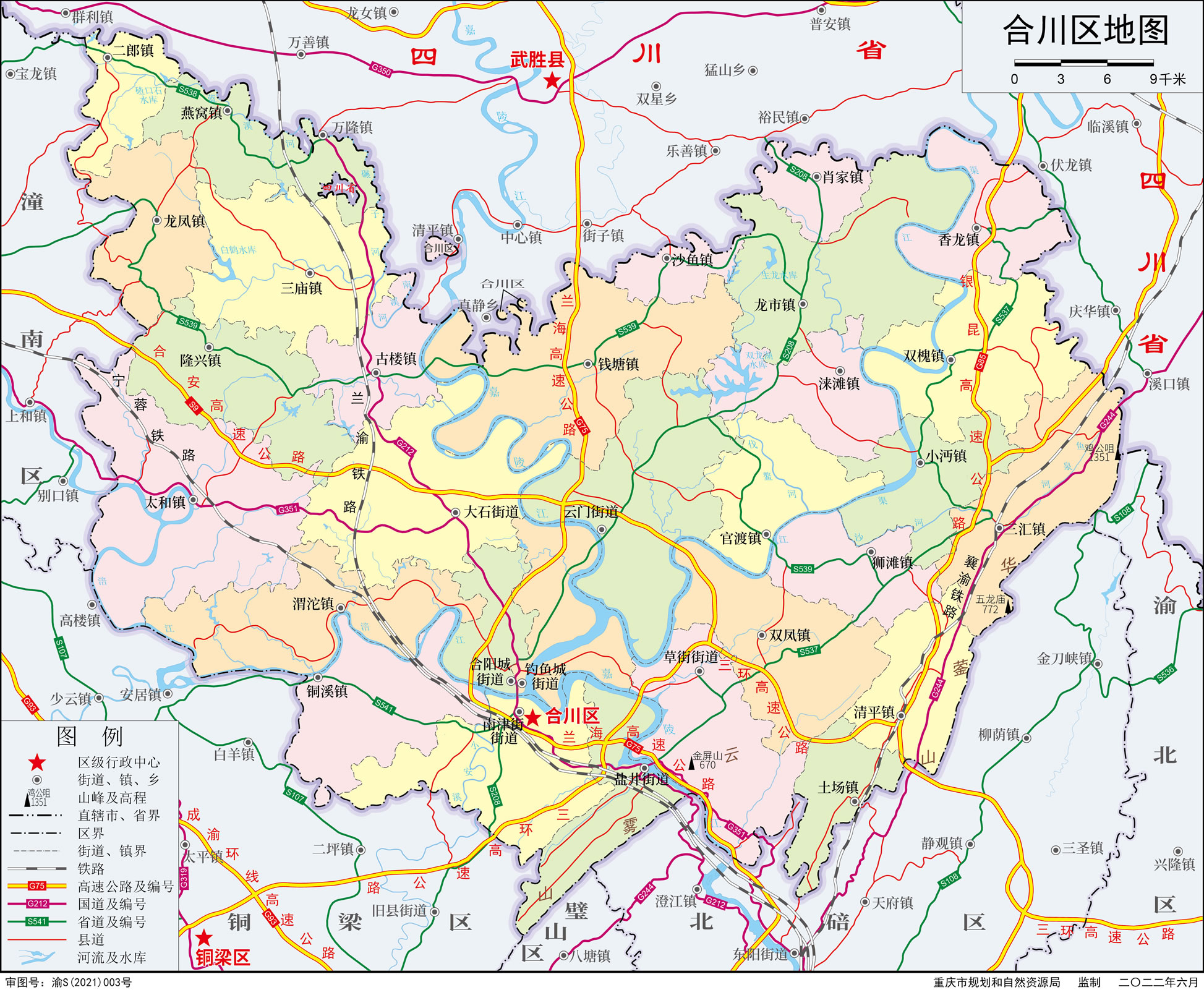 街道:合陽城街道、釣魚城街道、南津街街道、云門街道、大石街道、草街街道、鹽井街道
