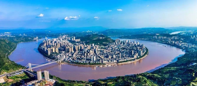 地處四川盆地東南邊緣,地跨盆東平行嶺谷、盆南丘陵、盆周山地三個地貌區(qū)。地形以山地和丘陵為主。地勢由南北向長江河谷逐級降低,地形南高北低,北部和中部以丘陵、低山為主,南部緊靠貴州以山區(qū)為主。北部華蓋山等系華瑩山支脈,南部四面山區(qū)系云貴高原過渡到四川盆地的梯形地帶。全區(qū)最高海拔1709.4米,主城區(qū)平均海拔209.7米。