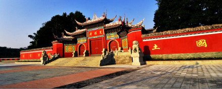 雙桂堂又名“福國寺”、“萬竹山”,由破山海明禪師于清順治十年(公元1653年)創(chuàng)建,因有兩株桂花樹而得名,座落在三峽腹地—重慶市梁平金帶鎮(zhèn)境內(nèi),是全國重點(diǎn)寺廟、市級(jí)重點(diǎn)文物保護(hù)單位,享有“西南佛教禪宗祖庭”之美譽(yù)。 [30]占地160余畝,有關(guān)圣殿、彌勒殿、大雄殿、文殊殿、破山塔、大悲殿、藏經(jīng)樓,位置從前到后,地勢由低到高,平行排列在中線上,均勻而對(duì)稱;客堂僧寮分布兩旁,天井海壩點(diǎn)綴其間,主次分明,虛實(shí)相生,自成體系;回廊曲巷,長亭短榭,廊巷緊連,巧妙地連接成一個(gè)結(jié)構(gòu)恢宏的宮殿式建筑群。