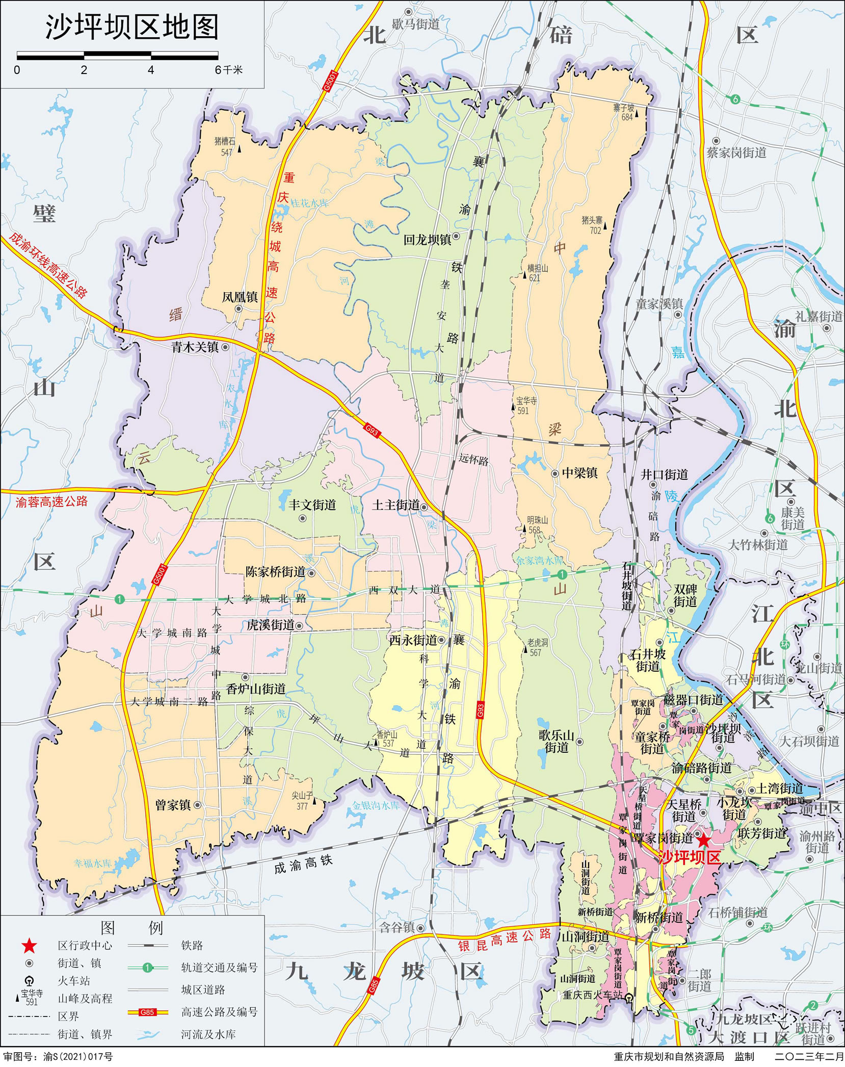 沙坪壩區(qū)轄21個街道、5個鎮(zhèn):