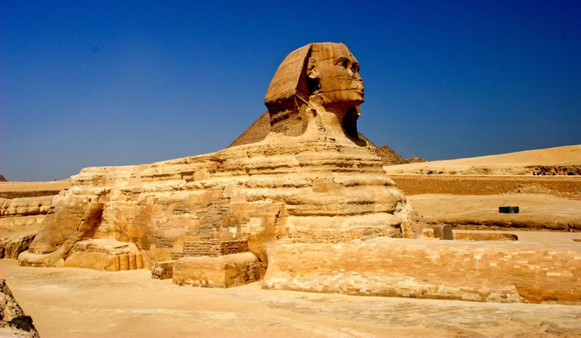 獅身人面像 獅身人面像,位于埃及吉薩的金字塔墓區(qū),頭像一部分說是古埃及法老哈夫拉按自己的肖像塑造, 也有觀點(diǎn)認(rèn)為是雷吉德夫根據(jù)父親胡夫的肖像建造。 此像高20米,長57米,若算上兩個(gè)前爪則全長72米。面部長約5米,寬4.7米,鼻子長1.71米,嘴大2.3米,1.93米。它頭戴“奈姆斯”皇冠,兩耳側(cè)有扇狀的“那姆斯”頭巾下垂,前額上刻著“庫伯拉”(即cobra:眼鏡蛇)圣蛇浮雕,下頜有帝王的標(biāo)志--下垂的長須,脖子上圍著項(xiàng)圈,鷹的羽毛圖案打扮著獅身。