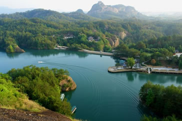 冠豸山東南有石門湖,潭深壑淺,湖清山秀,酷似一塊翡翠鑲嵌在冠豸山的奇峰險壑之中。登艇游覽,山環(huán)水繞,沿途可欣賞“渴馬飲泉”、“大象戲水”、“猴猻撞鐘”、“三姐妹石”、“瘋僧戴帽”等勝景。