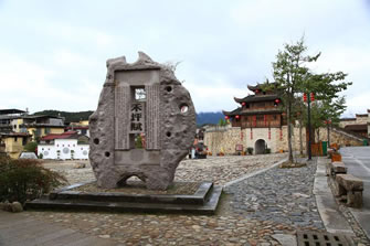 和平古鎮(zhèn)現(xiàn)存東北兩座譙樓。東門譙樓是三重檐歇山式,而其他三座譙均是兩重檐的。東門譙樓,門洞用石條砌成,墻體用大塊的卵石筑成。城墻腳下的這塊“禁止搬運(yùn)、保固地方”的石頭,是和平“舊市三禁碑”之一,為清代設(shè)立。由于當(dāng)時社會地主少、農(nóng)民多,農(nóng)民每次把收成的大部分上交給地主,在青黃不接的時候,糧價上漲,地主就把大部分的糧食外運(yùn)到邵武城關(guān)或福州,造成產(chǎn)糧地變?yōu)槿奔Z地,農(nóng)民面臨饑餓的威脅,因而設(shè)此碑,并輪流放哨,規(guī)定所有私自外運(yùn)的糧食都必須沒收或低價收購,因而它起到維護(hù)當(dāng)時的糧食市場的作用。北門譙樓,當(dāng)?shù)厝朔Q“武陽樓”,因它對面的山叫武陽山,清同治年間翻修過。城門的門洞用條石砌成,比東門門洞高大。城門兩邊各保留了一段用鵝卵石筑成的明城墻,鵝卵石上長滿青苔,漫漶的縫隙間長著青青野草,四季皆有野花開放,充滿了詩情畫意。風(fēng)雨譙樓,見證百年夕陽煙雨;古樸城門,迎送多少古鎮(zhèn)喜憂。譙樓走過的是悠悠歲月,形容雖然殘破斑駁,留下的卻是耐人尋味的古鎮(zhèn)歷史。