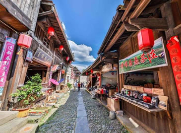 和平古鎮(zhèn)保留了完整的古街巷。城堡內(nèi)有兩條分別連接?xùn)|西城門和南北城門的街,街道兩側(cè)縱橫交錯的大小巷道都是中間鋪青石板,兩邊鋪河卵石,有的全部鋪河卵石。貫穿古鎮(zhèn)南北的舊市街,被譽(yù)為“福建第一街”。古街全長600余米,寬6-8米,街中心全以青石板鋪筑,因北高南低的地形關(guān)系,街道隨形就勢形成“九曲十三彎”,宛如一條騰空欲飛的青龍。古街兩旁分布著近百條縱橫交錯呈網(wǎng)狀的古建卵石巷道,或長或短,或?qū)捇蛘,高墻窄巷,古樸幽遠(yuǎn)。古民居鱗次櫛比,既有中原古風(fēng),又具地方特色,堪稱古民居的瑰寶。