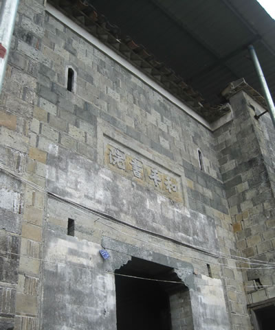 位于和平古鎮(zhèn)東門。此門李氏清晚期“一門九大夫”。建于清同治年間的李氏大夫第,為奉政大夫、知州李春江,奉直大夫、直隸州州同李奇川的宅府,俗稱“李恒盛”(寓為永遠(yuǎn)繁盛)。其門樓磚雕精致細(xì)膩,人物形態(tài)栩栩如生,美輪美奐。八字面的墻上有四幅《三國演義》里的典故:“斬顏良”、“華容道”、“長坂坡”、“博望坡”和“宋太祖千里送京娘”,還有雕刻精美的松、竹、梅、鶴、鹿、麒麟等組合的畫面。所雕的龍?jiān)谙隆ⅧP在上,是典型的清同治間產(chǎn)物,歷史時代特征非常明顯。該大夫第建筑面積1000余平方米,四合院式天井院建筑,南側(cè)有木構(gòu)二層護(hù)厝。合院內(nèi)三進(jìn)廳,均三開間,穿斗式構(gòu)架,大式作法。門欞、窗欞、雀替等構(gòu)件雕飾花草圖案和人物故事。石柱礎(chǔ),均有桎。廳堂柱上原有用大毛竹片雕刻的一副意義深刻的對聯(lián):天下第一等人忠臣孝子;世間只兩樣事耕田讀書。充分體現(xiàn)了儒家傳統(tǒng)文化――忠孝與長期的耕讀文化。站在第三廳的中央可遠(yuǎn)望二進(jìn)廳屋頂有一個四不象怪獸的屋脊裝飾,即古樸又神秘。