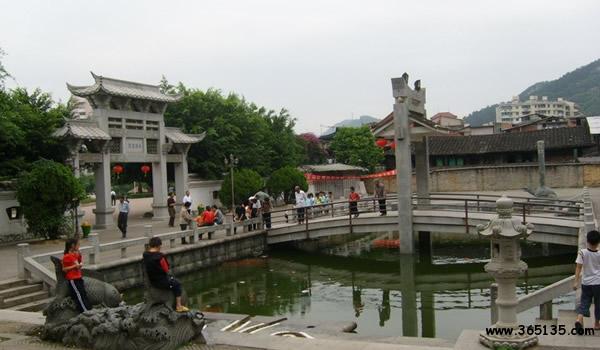 南溪書院:在尤溪縣城南的公山之麓,原為邑人鄭義齋館舍。北宋宣和五年(1123年),朱熹之父朱松任尤溪縣尉,去官后寓居于此。南宋建炎四年(1130年),朱熹在此誕生。朱熹逝世后,縣令李修于嘉熙元年(1237年)捐資在此修建文公祠、韋齋祠、半畝方塘和尊道堂等建筑,祀朱家父子。寶元年(1253年),宋理宗賜額“南溪書院”。元至正元年(1341年),分建二祠,明清后屢有修繕擴(kuò)建。書院古樸莊嚴(yán),現(xiàn)建筑面積1000平方米,有韋齋祠、觀書第、毓秀坊、毓秀亭等建筑。正堂當(dāng)中立朱熹石膏塑像,兩旁是朱子手書板聯(lián)四幅:“讀書起家之本 和順齊家之本 勤儉治家之本 循理保家之本”。四壁高懸其上溯八代列祖列宗畫像。書院內(nèi)的方塘,為朱熹幼年讀書處。朱熹《觀書有感》詩曰:“半畝方塘一鑒開,天光云影共徘徊;問渠那得清如許,為有源頭活水來”。其中的“半畝方塘”即指此處。明弘治十一年(1498年),知縣方溥主持,把半畝方塘擴(kuò)大浚深,并建亭于塘上,通以石橋,取名“活水亭”,今皆修復(fù)。