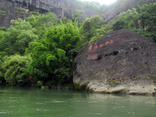 峰頂胡麻澗旁的石壁上,有歷代摩崖石刻近百處。其中最大一幅為“第一山”,系道光壬辰冬武顯將軍嶺南徐慶超題寫。意思是說天游峰即是“武夷第一勝地”,理應(yīng)號稱“第一山”。也有人解釋說,武夷山是道教名山,列三十六洞天中的第十六升真元化洞天。