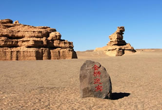 塔狀雅丹,是雅丹地貌發(fā)育壯年期的產(chǎn)物。由于風(fēng)吹、雨淋、水沖,大型雅丹體被侵蝕,沿裂隙不斷崩塌而逐漸變小,形成了如雄獅伏臥的景觀。它似乎在注視和迎接著遠道而來的游客。