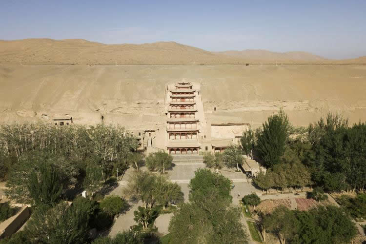 敦煌位于甘肅省的西部,從自然地理的位置上說,正處在河西走廊的西部盡頭處。這里南接青海,西連新疆,自漢代以來一直就是中西交通的樞紐。它的開鑿從十六國時(shí)期至元代,前后延續(xù)約1000年,這在中國石窟中絕無僅有。它既是中國古代文明的一個(gè)璀璨的藝術(shù)寶庫,也是古代絲綢之路上曾經(jīng)發(fā)生過的不同文明之間對(duì)話和交流的重要見證。莫高窟現(xiàn)有洞窟735個(gè),保存壁畫4.5萬多平方米,彩塑2400余尊,唐宋木構(gòu)窟檐5座,是中國石窟藝術(shù)發(fā)展演變的一個(gè)縮影,在石窟藝術(shù)中享有崇高的歷史地位。窟內(nèi)繪、塑佛像及佛典內(nèi)容,為佛徒修行、觀像、禮拜處所。敦煌石窟是建筑、雕塑、壁畫三者結(jié)合的立體藝術(shù)。洞窟分南北兩區(qū):南區(qū)492個(gè)洞窟是莫高窟禮佛活動(dòng)的場(chǎng)所,北區(qū)243個(gè)洞窟主要是僧人和工匠的居住地,內(nèi)有修行和生活設(shè)施土炕坑、煙道、壁龕、燈臺(tái)等,但多無彩塑和壁畫。
