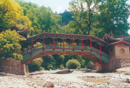 經(jīng)明末戰(zhàn)亂之后,山里的香客已經(jīng)絕跡,只留下寂靜的空山。谷內(nèi)原有一座臥橋,當(dāng)時(shí)已被洪水沖毀,只剩下兩個(gè)橋墩。劉一明觸景生情,無(wú)限感傷,立志要把此山修整一番,恢復(fù)“興隆”勝跡。于是他行醫(yī)治病,為興隆山募集資金。經(jīng)過(guò)多年的努力,在山上修建了百十座殿閣亭樓,還架起了一座宏偉的木拱橋,當(dāng)時(shí)取名“迎善橋”,意思是迎接八方的善士。從此,興隆山的香火四季不衰。后來(lái)山洪暴發(fā),橋又被沖跨,劉一明非常惋惜,束手無(wú)策。他有一個(gè)徒弟叫唐童,一天在邊采藥,見(jiàn)有人落水,便不顧一切地下水搭救,救上岸一看,是個(gè)又瞎又聾的老婆婆。唐童沒(méi)有嫌棄老人,而是替她換好衣裳,找來(lái)許多食物給她吃。老婆婆覺(jué)得唐童善良,就送給他一根三寸長(zhǎng)的麥秸,說(shuō)遇到河流擋路,它可以當(dāng)橋。唐童接過(guò)麥秸,正要道謝,老婆婆忽然不見(jiàn)了。唐童想驗(yàn)證老婆婆的話(huà),來(lái)到河邊,把麥秸放在河上,轉(zhuǎn)眼間就成了一座精美的橋。從此,這座橋再也沒(méi)有被洪水沖跨過(guò)。