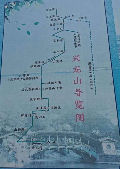 唐宋時(shí),興隆山神殿甚多,香火旺盛,稱(chēng)“洞天福地”。清代時(shí),這里廟宇樓閣,或依山面壁,或深藏密林,畫(huà)棟雕梁,飛檐紅柱,甚為壯觀(guān)。后大多被毀,僅存清代所建飛跨興隆峽的云龍橋(臥橋)一座。清康熙年間取復(fù)興之意,改名“興隆山”。本世紀(jì)五十年代,全山亭臺(tái)樓閣以及廟宇達(dá)70多處,景點(diǎn)24處,成為佛、道勝地。