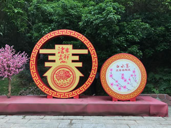 游客首先經過三道“如意橋”,以金玉如意和大紅中國結而成,還有“福”“祿”“壽”三星和傳統(tǒng)八仙向游人報喜;