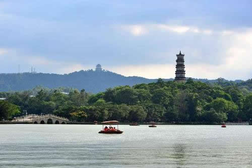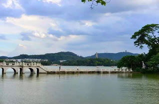 惠州西湖面積遼闊,湖岸彎環(huán)曲折,湖上洲嶼點綴、三面青山環(huán)抱。湖泊東西最寬處達(dá)4公里,南北最長達(dá)6公里,面積最大時有10平方公里,湖區(qū)面積約80平方公里。在煙波浩淼的湖面上,堤橋如帶,把湖面分割成五大部分,素有“五湖六橋”之稱。北宋大文學(xué)家蘇東坡贊惠州“山水秀邃”。這里是廣東著名的5A級國家風(fēng)景名勝區(qū)和旅游勝地。