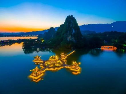 以不同的顏色交錯(cuò)投射到景物上,勾畫出七星巖景區(qū)內(nèi)神秘幽雅的堤岸、小橋,花木,巖山與湖水交相輝映,使夜幕下的七星巖更加絢麗多彩;同時(shí)開辟了星湖夜游項(xiàng)目,為廣大市民和游客在夜色中游湖觀光提供了一個(gè)美麗的環(huán)境 ,再造出“第二星湖”。增加了許多新的景點(diǎn),如牌坊文化廣場,每當(dāng)夜幕降臨,霓虹閃耀,游人如鯽,當(dāng)露天音樂噴泉啟動(dòng)之時(shí),七星巖牌坊廣場更顯得壯觀,每逢周末或節(jié)假日,這里還可以欣賞一臺(tái)臺(tái)豐富多彩的文藝節(jié)目,真是令人如醉如癡。位于星巖東面的仙女湖,每當(dāng)太陽西下,還可以觀賞到天然奇觀--臥佛吞日。