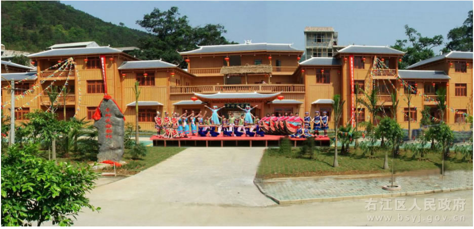 百色市右江區(qū)永樂鄉(xiāng)距百色城區(qū)20公里,地處澄碧湖畔,總占地面積約4.15平方公里,共348戶1428人,由華潤集團(tuán)無償捐資5000萬元建設(shè),是全國首個“華潤希望小鎮(zhèn)”,也是廣西目前建設(shè)規(guī)模最大的社會主義新農(nóng)村示范點(diǎn),堪稱廣西第一村。 小鎮(zhèn)環(huán)境優(yōu)美,民風(fēng)淳樸。華潤希望小鎮(zhèn)毗鄰澄碧湖旅游風(fēng)景區(qū),空氣清新,河水清澈,具有優(yōu)美的山水風(fēng)光和典型的農(nóng)業(yè)景觀。