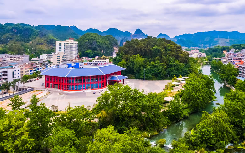 德保芳山文化體育公園范圍包括原九曲橋公園及芳山,位于縣城東部中心城區(qū),由鑒河景觀廊道串連而成,其間有山地、河流等各種豐富的自然景觀。公園總占地面積16.99公頃,其中綠化面積15.69公頃,水體面積3.361公頃,景區(qū)內(nèi)旅游資源豐富,這里空地清新,有蜿蜒清澈的河流、郁郁蔥蔥的草木,宛如世外桃源;這里歌圩之風盛行,民族風情濃郁,節(jié)慶活動豐富多彩,是一個集濱河觀光、文化體驗、休閑度假、健身娛樂、生態(tài)科普于一體的多功能旅游景區(qū)。