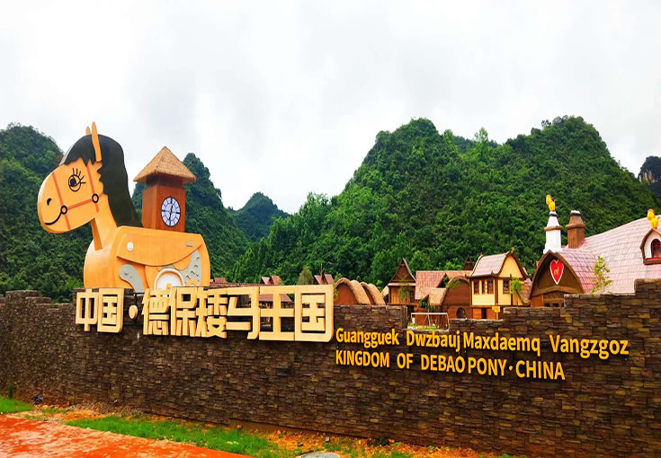 德保矮馬王國景區(qū)位于德?h燕峒鄉(xiāng)興旺村坡寧屯(吉星巖AAAA景區(qū)出口處),一期開發(fā)建筑面積400畝,建設內(nèi)容有矮馬王國競技場、萌寵部落、矮馬小鎮(zhèn)、矮馬游樂園、矮馬劇場、木屋酒店、帳篷酒店等項目,涵蓋動漫賽事、親子游樂、互動體驗、教育科普、文化演藝等于一體。矮馬王國景區(qū)從德保矮馬“萌”的核心特色出發(fā),將德保矮馬IP化,以親子卡通化的形象表現(xiàn)手法,創(chuàng)意“矮馬保保”的主人公形象,將德保矮馬打造成為華南萌主;以故事場景化的主題敘事手法,構建“矮馬保保”和他的小伙伴們的王國樂園,打造以德保矮馬為IP的主題家庭親子旅游目的地。讓孩子置身于童話故事中,兼具開發(fā)智力、認識自然的同時,還能兼顧大人玩耍與視覺審美,是全家人親子互動、休閑娛樂的地方。